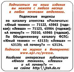 Поздравляем с победой Ильдара АСФАНДИЯРОВА из Башкортостана. Правильно и обстоятельно ответив на вопросы нашего традиционного конкурса «ЮТ» № 2 — 2003 г., он стал обладателем конструктора «Инопланетные насекомые».