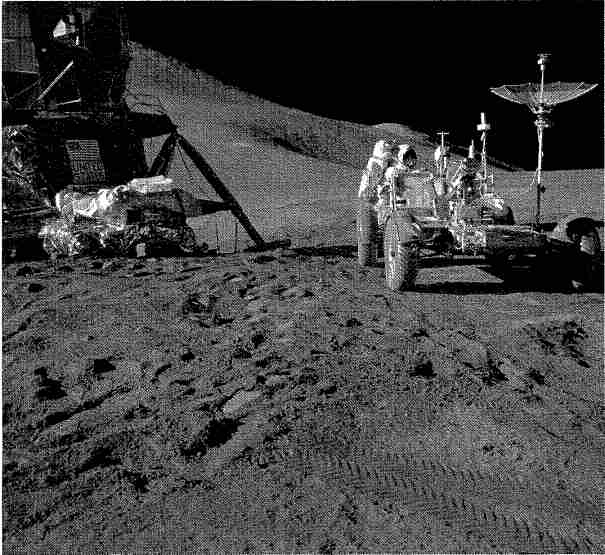 Рис. 3.9. Эти следы, оставленные астронавтами и их аппаратурой на поверхности Луны, сохранятся в течение миллионов лет.