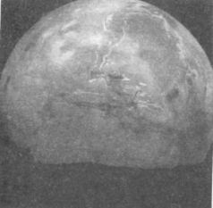 Изометрическая компьютерная реконструкция по методу «форма из затенения» вида «лица» под небольшим углом с северо-запада на основе информации, считанной с кадра 70А13. (Карлотто)