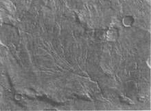 «Древовидные» каналы, вроде изображенных здесь, напоминающие притоки земных рек, указывают на возможность того, что когда-то Марс имел воду в таком же изобилии, в каком сегодня ее имеет Земля. (НАСА)