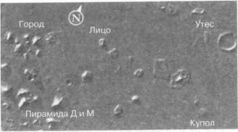 Полученная на компьютере (3-D) перспектива аномалий Сидонии по направлению к «лицу». (Карлотто)