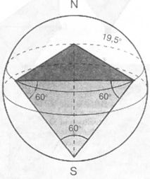 Описанный тетраэдр: если поместить тетраэдр – простейшее из геометрических тел – во вращающуюся сферу таким образом, чтобы одна его вершина оказалась на северном или южном полюсе, то остальные три вершины окажутся точно в 19,5 градуса от экватора. Этот тетраэдрический угол в 19,5 градуса появляется с неестественной частотой в измерениях Сидонийских аномалий. Свидетельство об утраченном математическом послании?