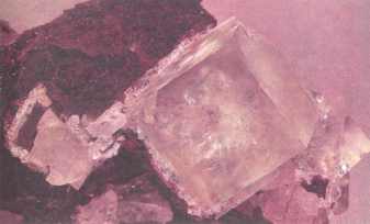 Есть флюориты и нежно-сиреневые, отдающие в голубизну. Цвет их густеет, нарастает к углам кубиков, оставляя середину светлой, почти прозрачной, и там, в этой голубоватой глубине, перламутровым зеркалом поблескивают косо рассекающие кристалл плоскости. Плоскости совершенной спайности разбивают объем куба или любого неясной формы куска флюорита на угловатые блоки. При повороте глыбы они поочередно озаряются и наполняются светом и цветом.