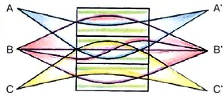 Если на переднем торце градиентного стержня с радиальным распределением показателя преломления, имеющего длину, равную периоду траектории луча в нем, находится предмет, то его изображение находится на заднем торце. Это изображение прямое и в натуральную величину. Для передачи изображения стержни надо выстроить в одну-две линии. Но есть тонкости. Стержни не могут касаться оригинала и тем более нестойкого к царапинам и износу светочувствительного барабана, который зачастую бывает покрыт слоем полированного селена.