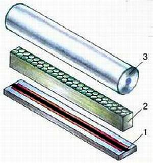 Блок градиентных стержней используется и в лазерном принтере. Он обеспечивает фокусировку излучения линейки миниатюрных полупроводниковых лазеров (рис. 5) на поверхность светочувствительного барабана.
