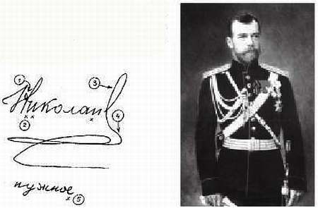 Подпись Николая Романова (Николая II)