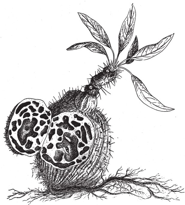 Рис. 8.4. Растение предоставляет муравьям готовое жилье в обмен на защиту. Ложная луковица Myrmecodia pentasperma в разрезе.