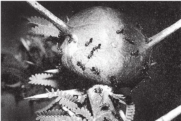 Более известен вид муравьев, которые живут только в особенных полых шипах акации (рис. 8.5). Толстые, объемистые шипы сразу формируются с полостью внутри – будто специально для муравейника. Зато жгучие муравьиные укусы обеспечивают дереву безопасность. Это доказали удивительно простые наблюдения. После обработки инсектицидом муравьи на акации погибли, и вскоре стало заметно, что она серьезно пострадала от агрессии со стороны травоядных. Муравьи думают – конечно, если они вообще думают, – что шипы акации созданы для их блага. Акация полагает, что главная задача муравьев – защищать ее от тех, кто пожирает ее листья. Следует ли отсюда, что каждый член этого содружества действует в интересах другой стороны? Скорее уж, обе стороны используют друг друга в собственных интересах. Получается своего рода бартер, когда выигрыш каждой стороны достаточно велик, чтобы оправдать расходы на взаимопомощь.