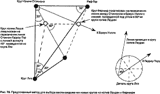 Объекты, вроде камней Стэннон или церкви Дамблтон, призванные сыграть ключевую роль в геометрии, следовало тщательно выбирать. Местоположение других объектов могло быть определено по их соотношению с уже установленными. И все же гибкость при выборе различных углов дает широкий разброс возможных вариантов, которые следует рассмотреть прежде, чем сделать окончательный выбор.