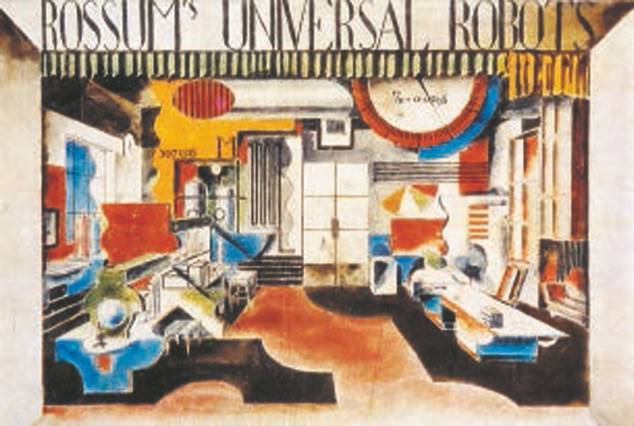 Эскиз декораций к спектаклю по фантастической пьесе Карела Чапека «R.U.R.», поставленной в Праге в 1921 году.