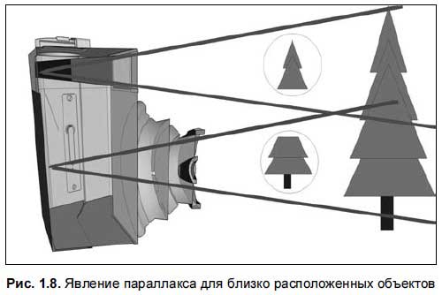 Суть этого эффекта в том, что границы изображения на пленке смещены относительно границ изображения, наблюдаемого через видоискатель. Особенно резко этот эффект проявляется при съемке портретов или предметов на близком расстоянии (рис. 1.8).