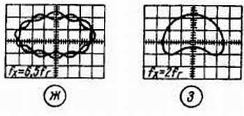 Можно дальше увеличивать частоту нашего генератора, например, до получения изображения двух синусоид (рис. 69, з), свидетельствующего о вдвое большей частоте исследуемого сигнала либо получить изображение исходного эллипса при одинаковых частотах сигналов обоих источников.