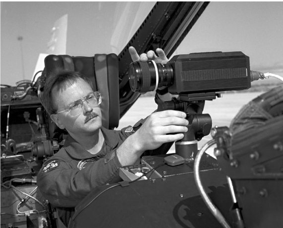 Рис. 4.32. Дэниэл Дурда устанавливает в кабине самолета видеокамеру.