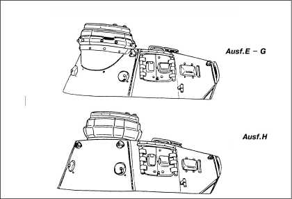 Подверглись изменениям конструкция вентиляционных отверстий силового отделения, выхлопная система и люки доступа к агрегатам механизма поворота на верхнем лобовом листе корпуса. Ближе к корме была перенесена антенна радиостанции FuG-5. Наконец, на танках Ausf.B устанавливалась новая командирская башенка, аналогичная примененной на танке Pz.IV Ausf.A.