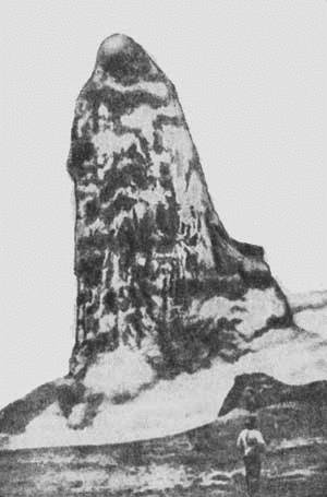 Рис. 16. Каменный обелиск, поднявшийся из вулкана Мон-Пеле после извержения.