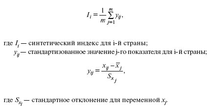 Обобщающим показателем уровня жизни также может быть и синтетический индекс, построенный на основе стандартизованных значений исходных показателей: