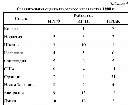 Благодаря ранговым коэффициентам корреляции Спирмена (?) видно, что даже для государств с высоким уровнем социально-экономического развития совокупные показатели человеческого потенциала не повторяют друг друга. Предельная слаженность рангов отмечается по показателям ИРГФ и ИРЧП (р = 0,6), максимальная разлаженность – по показателям ИРГФ и ПРВЖ (? = 0,26)[33].