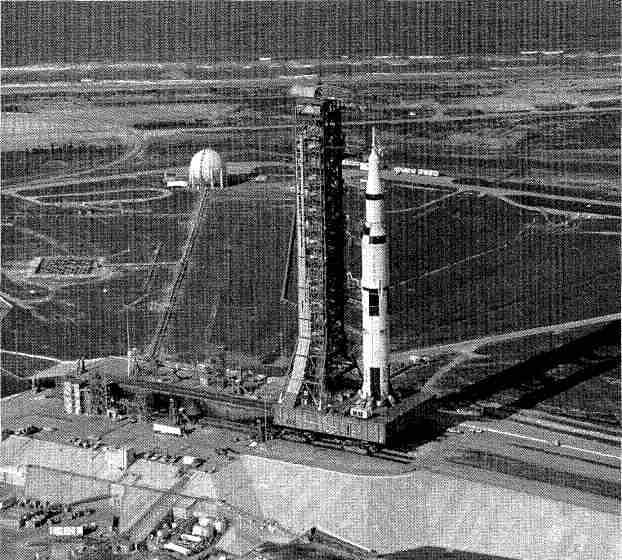 Рис. 6.24. Доставка ракеты «Сатурн-5» с кораблем «Аполлон-11» на стартовую позицию.