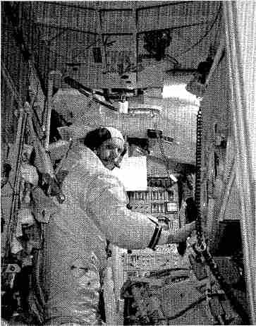Рис. 6.29. Н. Армстронг в кабине LM. Снимок сделан на Земле во время работы на тренажере.
