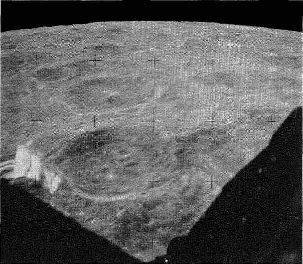 Рис. 6.33. Вид из снижающегося лунного модуля на место посадки.