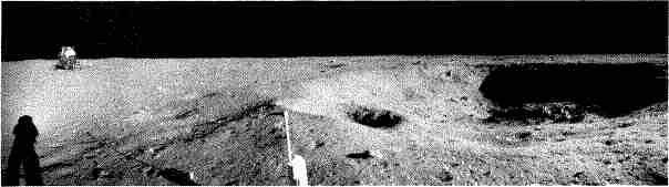 Рис. 6.47. Панорама № 5, снятая Н. Армстронгом на максимальном расстоянии от места посадки. Справа — 33–метровый кратер East.