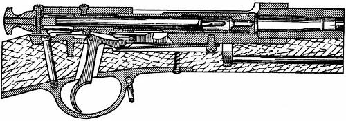 Гражданская война в США показала все преимущества казнозарядного ружья с металлическим патроном. В ходе войны в американской армии появились первые магазинные ружья, неизвестные солдатам других стран. Это были винтовки Спенсера с семизарядным магазином в прикладе и Генри, имевшие подствольный трубочный магазин на 15 патронов. Но эти винтовки, сконструированные в 1860 г., имели очень слабый патрон[279].
