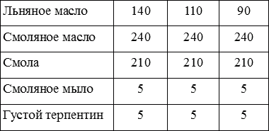 Приводим еще три рецепта дешевого типографского лака с невареным льняным маслом.