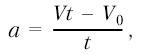 где а – ускорение; Vt – конечная скорость движения, м/с; V0 – начальная скорость движения, м/с; t – время изменения скорости движения, с.