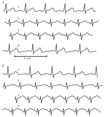 Они свидетельствуют о том, что ослабленная сердечная деятельность во многих случаях служит причиной нарушения кровообращения мозга и последующего расстройства сознания и зрения. Смещение интервала ST и изменение зубца Т приобретают важное практическое значение, поскольку эти изменения обычно отмечаются за 10–20 с до появления признаков нарушения мозгового кровообращения. Такая ЭКГ может сигнализировать о возможности появления глубоких функциональных нарушений центральной нервной системы при дальнейшем увеличении перегрузок и удлинении их действия.
