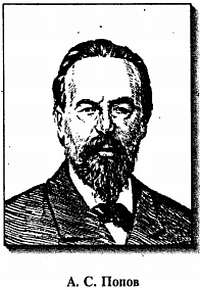 Теперь, уважаемые читатели, мы подошли к знаменательной дате, отмечаемой в нашей стране как памятный праздник, — к 7 мая 1895 г. Эта дата — день рождения радио! В тот день воедино сошлись изобретения ученых, о которых мы только что рассказали. Соединить вроде бы несоединимые вещи, в результате чего появилось совершенно новое техническое направление передачи осмысленной информации без помощи проводов, удалось нашему соотечественнику профессору Александру Степановичу Попову (1859–1906). Сын православного священника, настоятеля небольшой церкви в поселке Турьинские Рудники Пермской губернии, он в 1877 г. приехал в столицу и поступил на математическое отделение Петербургского университета — лучшего учебного заведения России. Еще в студенческие годы Попов подрабатывал в товариществе «Электротехник». Он также принимал активное участие в первой российской электротехнической выставке, прошедшей в Петербурге в 1880 г. Практический опыт, приобретенный в студенческие годы, оказался бесценным — к моменту получения диплома Попов считался инженером-электротехником с солидным стажем.