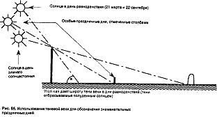 Чем выше тенеобразуюший столб, тем больше разница в длине двух теней, что порождает новые проблемы. Чем длиннее тень, тем менее заметной она становится. На самом деле ямка в центре Святилища не вместила бы очень уж высокий столб.