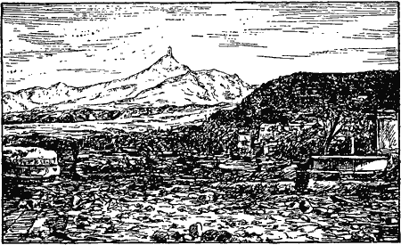 Рис. 11. Город Сен-Пьер и вулкан Мон Пеле до извержения в 1902 году.