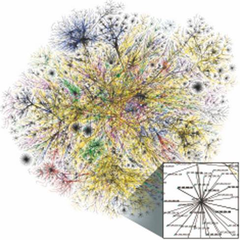 Топография сети Интернет, напоминающая корневую систему – она исполняет те же функции: децентрализованная система без единого командного центра.