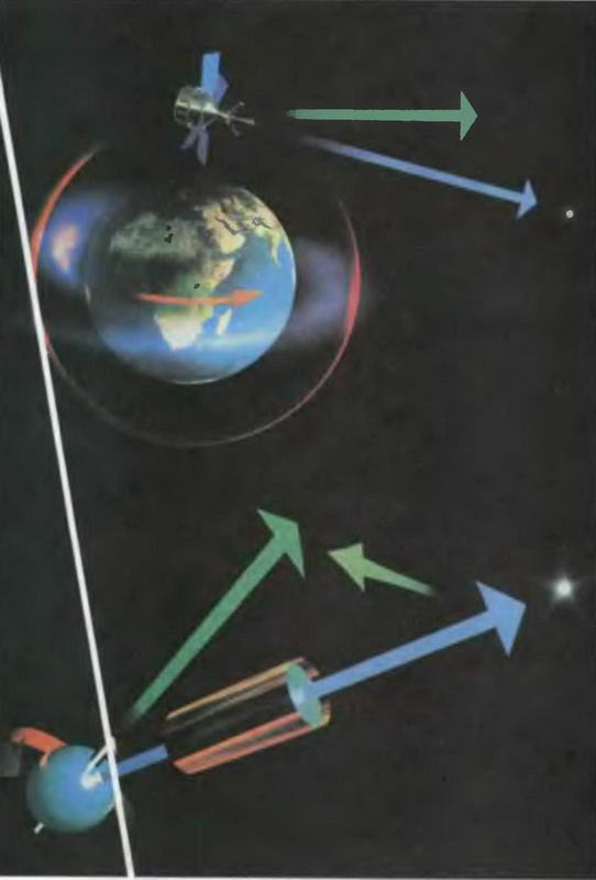 Так вот, еще в 1959 году Леонард Шнфф, профессор физики американского университета в Стенфорде, предложил вывести на околоземную орбиту такой гироскоп и направить его ось на какую-нибудь заметную звезду. С течением времени это направление будет сохраняться, а пространство — время, увлекаемое вращением Земли, будет потихонечку «уползать» в сторону. Ось гироскопа отойдет от своего направления на звезду.