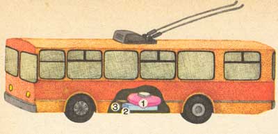 Гиротроллейбус: 1 - электродвигатель-генератор с маховиком; 2 - вакуум-насос; 3 - электроприборы управления.