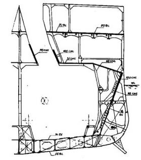 Пространство между бортовой обшивкой и внутренним поясом, переходящим в ПТП, делилось на водонепроницаемые отсеки, причем в районе ПТП эти отсеки использовались для хранения топлива и котельной воды. Остальные нефтяные и водяные цистерны располагалась в двойном дне. Толщина стенок буля ступенчато увеличивалась книзу: от 12 мм у верхней кромки пояса до 18 мм у места стыка ПТП с днищем.