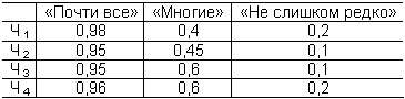 Значит, все зависит от того, как определены ?, ? и ?. Пусть для определения этих значений мы опросили четырех людей Ч1, Ч2, Ч3 и Ч4. Их ответы сведены в табл. 6.