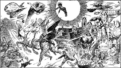 Рисунок художника XIX века, показывающий победное шествие электричества