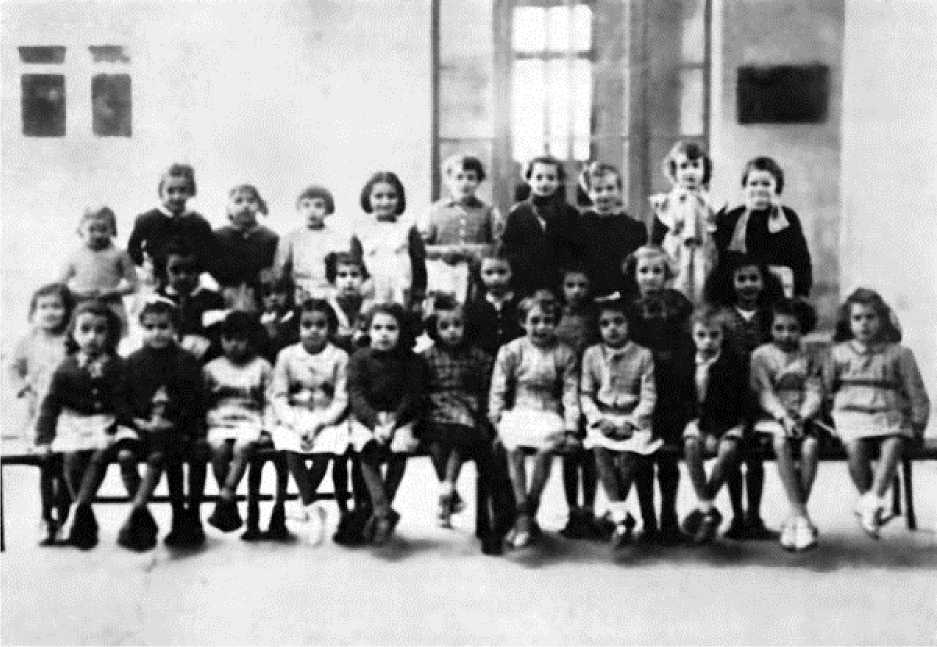 В школе с одноклассницами. Мирей в последнем ряду, четвертая слева