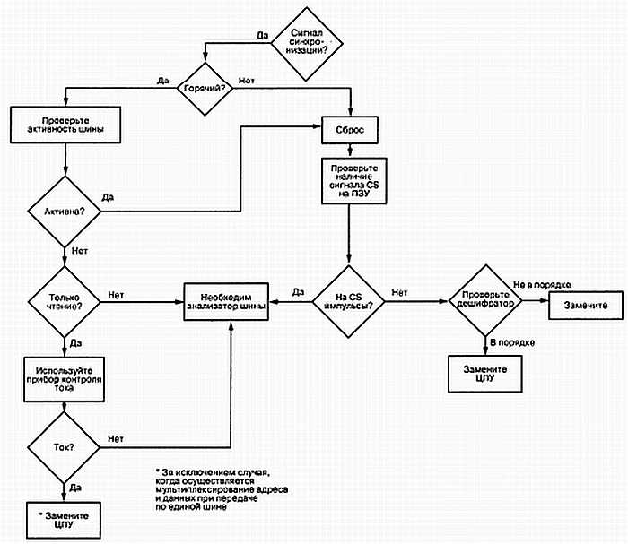 17. Если вы занимаетесь обслуживанием только с помощью логического пробника и осциллографа, и синхронизация работает, но система не функционирует, то следует: