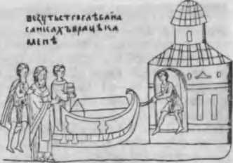 Мал. І Несуть ce Бориса на погре- Мал. 2. бенмя Із »Сказання про святих Бориса та Гліба».