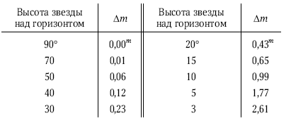 Для того чтобы исправить наблюдаемую яркость светила в визуальном диапазоне спектра за дополнительное поглощение света в атмосфере (как говорят, «привести наблюдения к зениту»), нужно от наблюдаемой звездной величины отнять ?m: