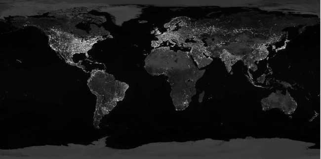 Рис. 3.37. Космическая панорама ночной Земли дает представление о степени светового загрязнения неба в разных уголках планеты.