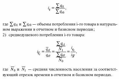 Разница между числителем и знаменателем индексов демонстрирует абсолютное изменение общего и среднедушевого потребления i-гo товара: