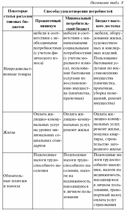 В порядке повышения уровня удовлетворения потребностей человека появляется бюджет высокого достатка, который дает возможность более высокого уровня потребления, рассчитанного на расширенное воспроизводство и соответствующее удовлетворение потребностей члена общества.