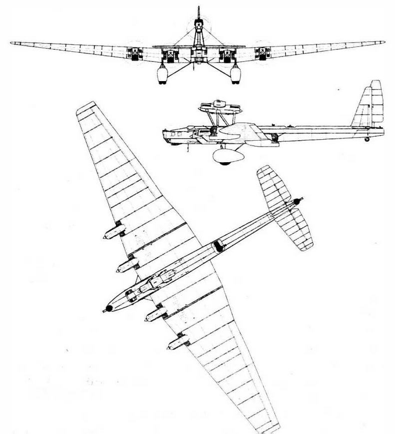 Все двигатели самолета питались из бензобаков в крыле. Всего баков имелось восемь — два в центроплане и шесть в консолях. Общая их емкость равнялась 8500 л. Для подачи горючего к моторам верхней тандемной установки предусмотрели электронасос и запасной ручной («альвейер»).