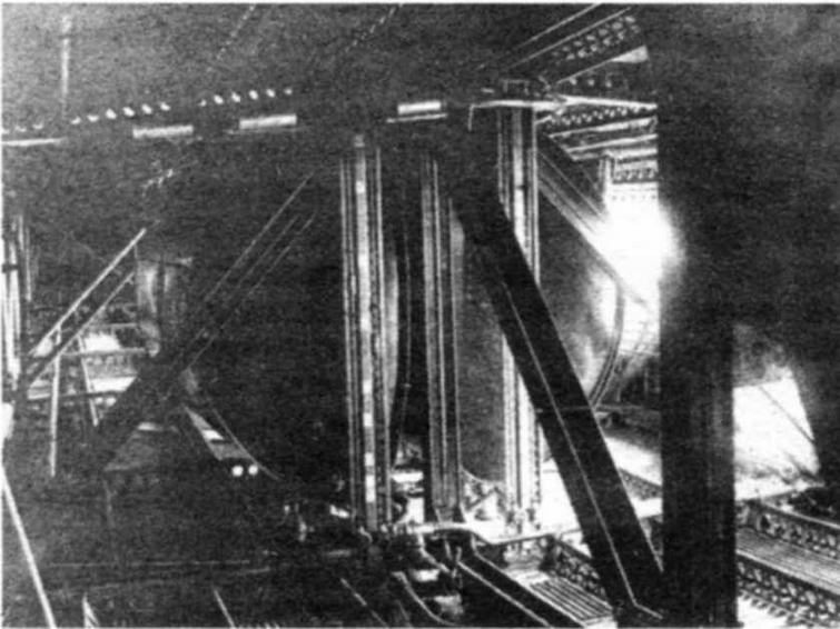 Но реально в феврале 1933 г. на Центральный аэродром только начали вывозить готовые узлы гигантского бомбовоза. Цеха, где можно было бы собрать столь огромную машину, в Москве не нашлось. Ее собирали и регулировали прямо на летном поле, построив многоярусные леса. Процесс этот шел долго — вплоть до июля. Самолет так и не укомплектовали полностью. В частности, турели смонтировали без пушек и пулеметов. Вместо радиостанции 11-СК на самолете стоял макет. Радиопеленгатор отсутствовал. Даже при этом взлетный вес превышал расчетный примерно на две тонны, достигнув 33 т.