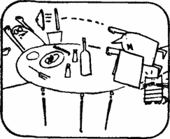 Мари. Кажется, я начинаю понимать, в чем дело. Официант подает, хотя и не очень вежливо, на стол пирог, и в первом слоге слова «пирог» скрыто «изображение» числа ?.
