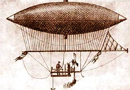 И 24 сентября 1852 года близ Парижа совершил на нем полет, длившийся почти пять часов. Установленная на дирижабле рекордно легкая паровая машина развивала мощность в три лошадиные силы и весила 50 кг. Это был первый и единственный в истории паровой дирижабль.