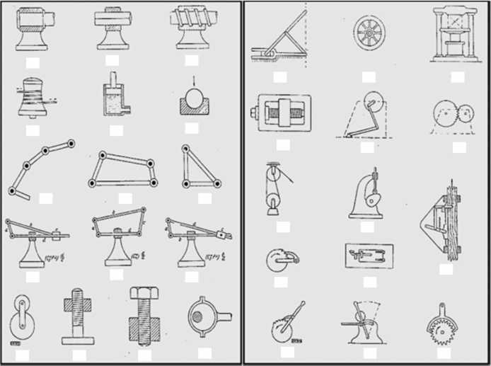 Работы последователей Монжа были направлены на адаптацию выбранной им исходной теоретической схемы в соответствии с обширным новым эмпирическим материалом, накопленным к этому времени в практике создания машин. В этом смысле является показательной книга И. Ланца и А. Бетанкура «Курс построения машин»[341], которая представляет собой одну из первых попыток теоретической систематизации и объяснения всех основных машин того времени. Они составили обширную таблицу элементарных машин, дав ее описание в своей книге. В предисловии к английскому изданию их книги говорится, что она дает массу важной практической информации и может рассматриваться как грамматика науки о машинах.